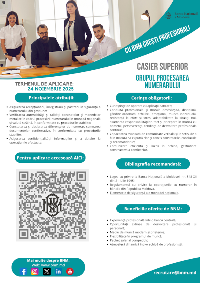 Expert(ă) principal(ă) al/a Secției Rezoluție bancară al/a Direcției Rezoluție bancară