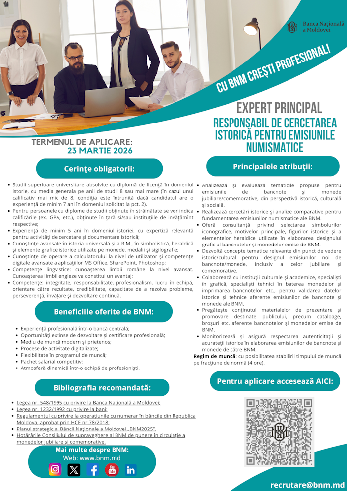 Expert principal responsabil de cercetarea istorică pentru emisiunile numismatice