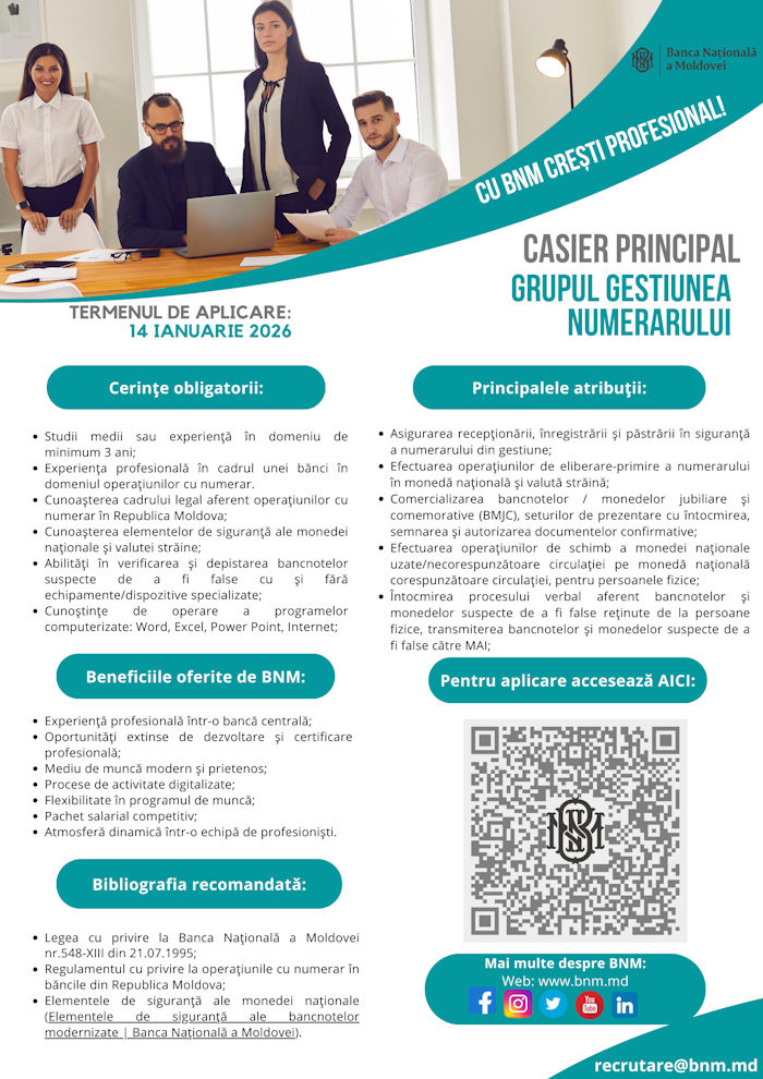 Expert principal responsabil de reglementarea evidenței contabile în BNM
