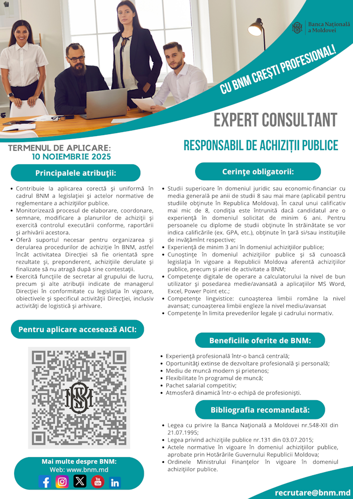 Expert principal responsabil de reglementarea evidenței contabile în BNM